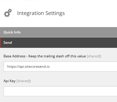 Once copied, open the Content Editor in Sitecore and navigate to /sitecore/content/GlobalSettings/Integration Settings. Here you will see a field called API Key. Paste it there and save.