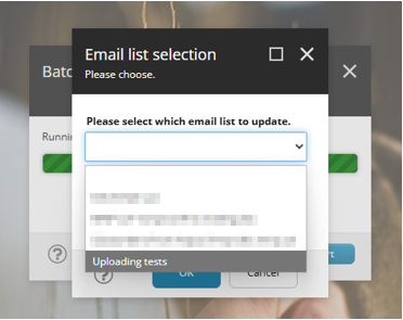 Next, you will be asked to choose which list you want to update. If there are no lists, and you see them in Send, check the integrations settings item under the global settings are of the sites to make sure the “API key” is right.