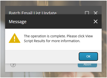 Finally, you will see a message that the process is complete. After you click Ok, you can click to see the results of the operation, which would apply regardless of if it was a success or there was an error.
