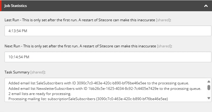 The Job Statistic data section is self explanatory. It will show the last run's log and the time of the last and next run.