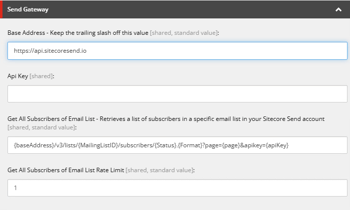 This module is driven by one config file, a main settings item, which will have child items (as insert options) which represents each email list in Send you want to include.