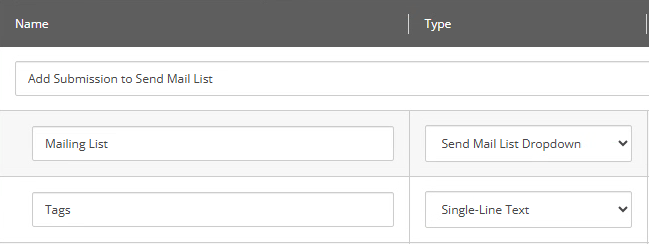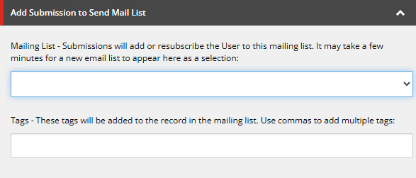 Like I said this example is in relation to the last post, but can be used for anything, really. The following base template is made available for any custom form in our solution, so the Author now has the ability to set the target email list and provide some tagging. The Developer will use these two fields and submit them along with form date to the helper I showed before.